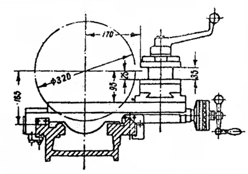 Резцовую салазку, токарный станок использует для измерения точности в перемещении резцовых головок, чем управляют несколько маховиков и специальные рычаги.