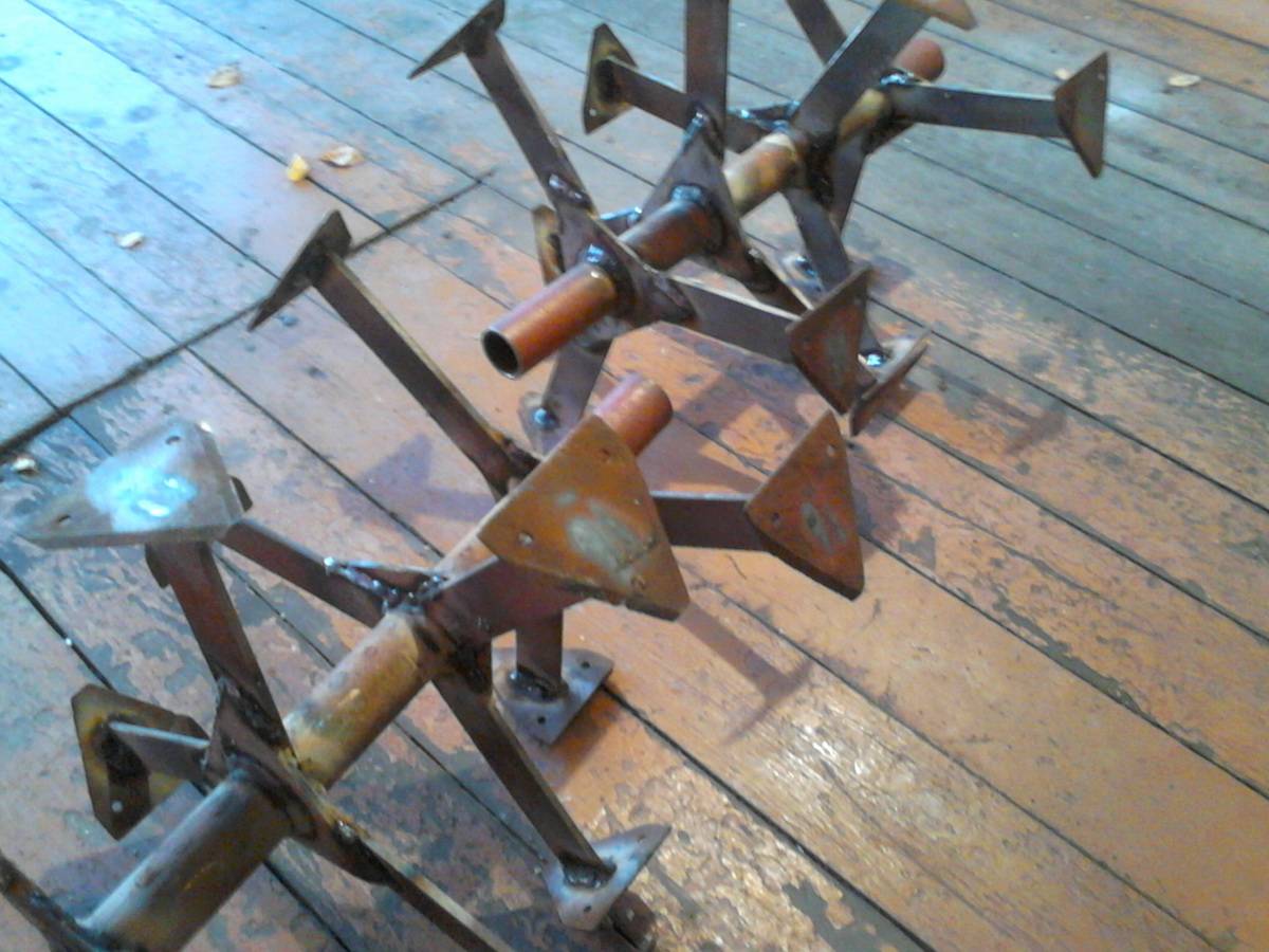 Как уже говорилось, работы начинаются с проведения замеров участка. После того как все вычисления произведены, можно приступать непосредственно к сборке. Используя сварочный аппарат, соедините ножи с заранее подготовленной трубой. Перед этим можно заточить кромки элементов под нужным углом.