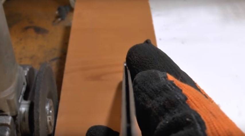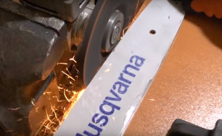 Включив болгарку, шину несколько раз обрабатывают болгаркой с обеих сторон.