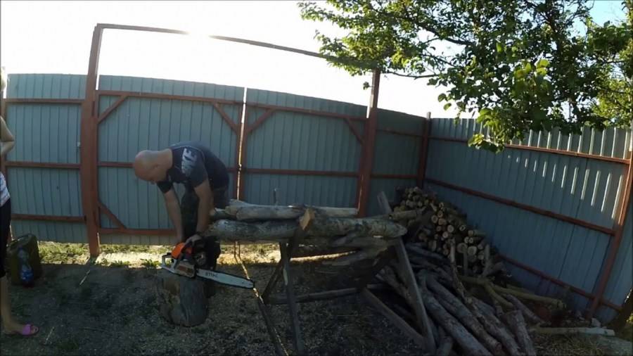 - Приспособление для бензопилы продольной распиловки своими руками должно иметь такую высоту, при которой у оператора не будет уставать спина и руки.