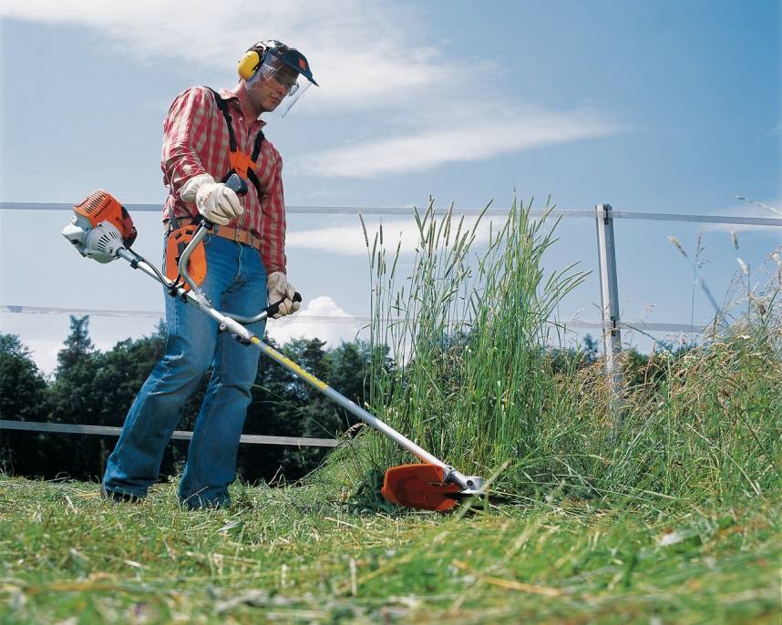 - Оператору триммера лучше надеть одежду из плотной ткани, полностью закрывающую руки и ноги.