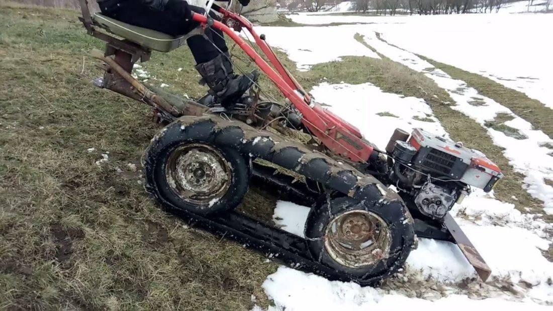 Для тех кто хочет ездить на сельском участке по снежным дорогам, также хорошо подойдёт этот вариант. Создать снегоход своими руками довольно просто. Самым сложным в этом случае является составление чертежей и монтаж шасси на четырёх колёсах. Особенностью такого транспорта можно считать минимальное давление, которое приходится на поверхность земли. Лучше всего изготовить специализированные сцепки с землёй, исходя из колёс мотоблока.