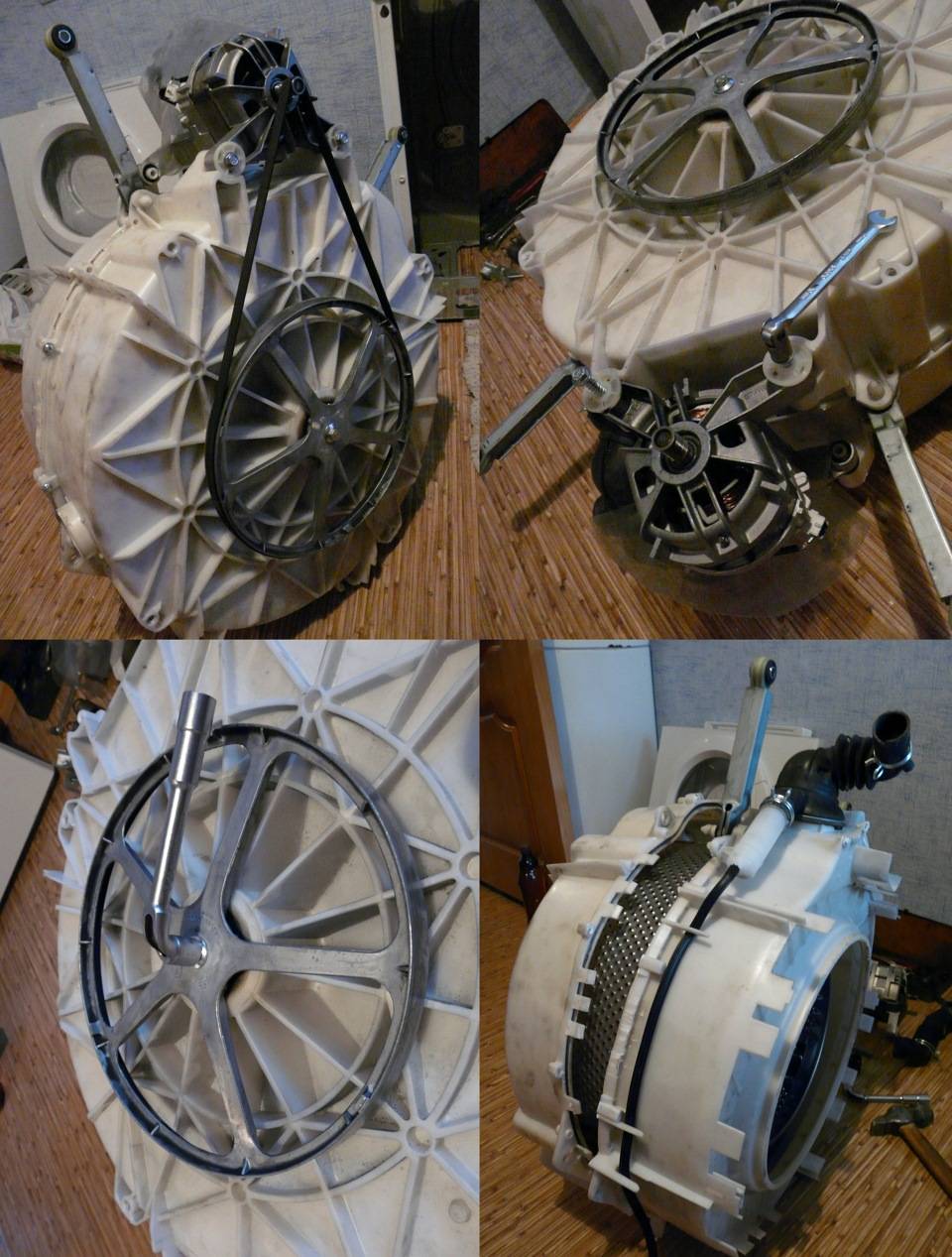 - Оцениваем движение бачка: если заметен люфт, барабан расшатан, значит, необходима замена подшипников.