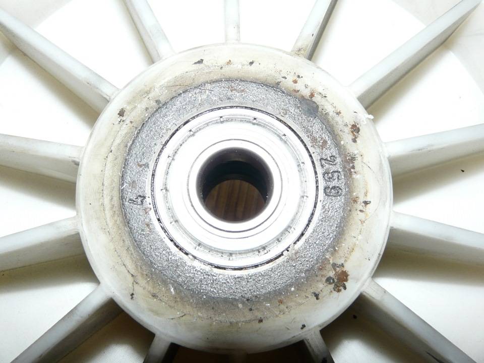 Следующим этапом станет извлечение подшипников. По центру барабана Вы увидите втулку и подшипники. Если подшипники в более-менее нормальном состоянии – вытаскивайте втулку, и с помощью подъёмника извлеките подшипники. Если же подшипники заржавели, то потребуется их выбивать.