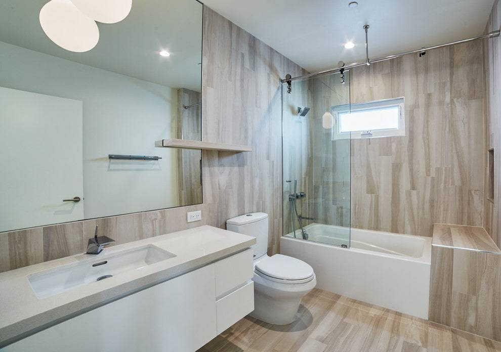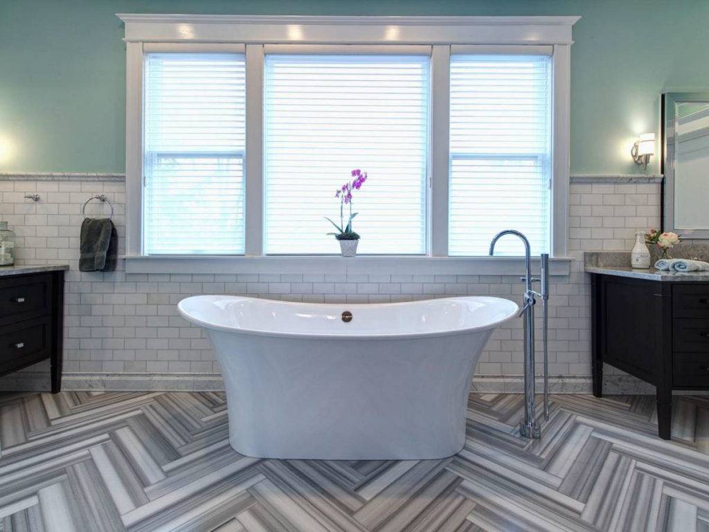 Отделка плиткой, имитирующей деревянный ламинат, также рекомендуется для ванн.