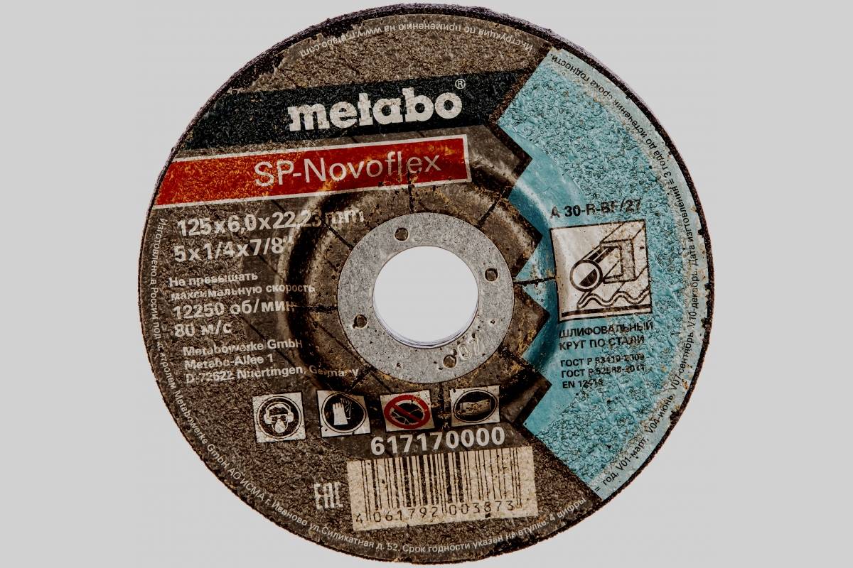 Зачистной расходник приобретается для приведения в надлежащее состояние металлических поверхностей. Толщина – 6,4 мм, диаметр – 125 мм. Диск относится к шлифовальному типу. Посадочный диаметр – 22,2 мм. Вогнутой формы. Крепится посредством зажима. Место установки – фланец. В упаковке находится товар в одном экземпляре. Вес конструкции – 140 грамм. Белорусский бренд изготавливается на китайских производственных мощностях, но к качеству претензии не поступали.