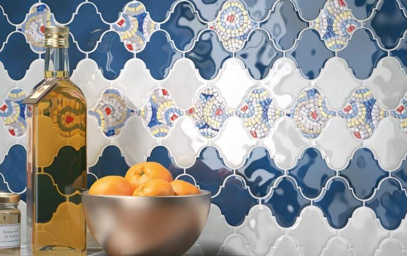- Плитки с декором – эта разновидность плитки с рисунком или рельефным изображением. От нарезки плитки с декором лучше сразу отказаться. Для этого на этапе раскладки плитку с декором надо выносить в центральные места помещения. Также плитку с декором не рекомендуется располагать под потолком или у пола.