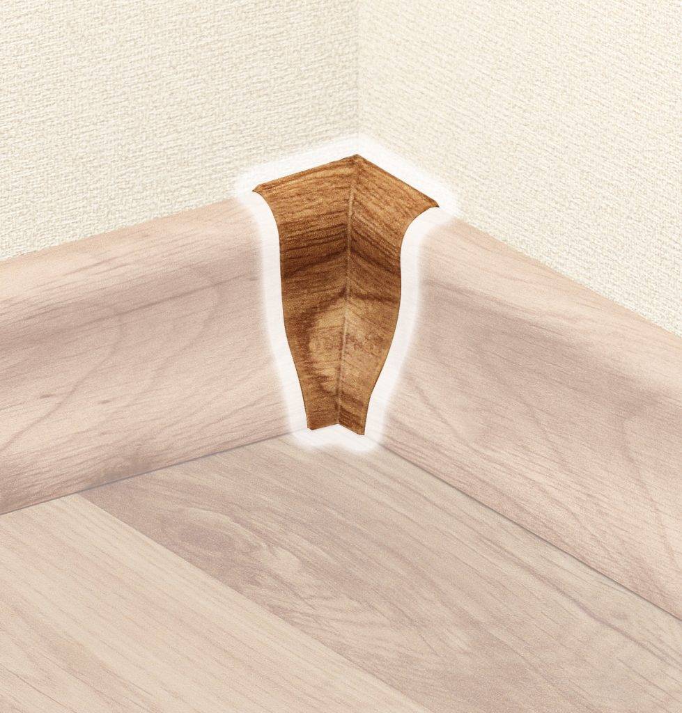 Главную сложность представляют внешние углы, которые идут сразу за внутренними. Основная трудность заключается в том, что в подобных случаях очень непросто правильно определить длину плинтуса, которая необходима на таких участках. Часто при правильной обработке одно из углов заготовка просто не дотягивается до стыка или образует большой зазор. Единственный выход из ситуации – работа «на глаз» с примеркой плинтуса к месту монтажа перед началом обработки.