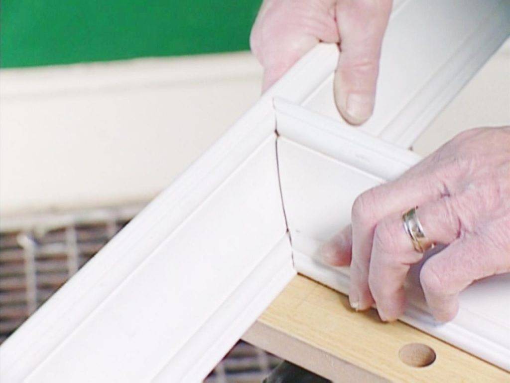 Рассмотрим, как ровно нарезать плинтуса на потолок для состыковки внутренних и внешних углов.