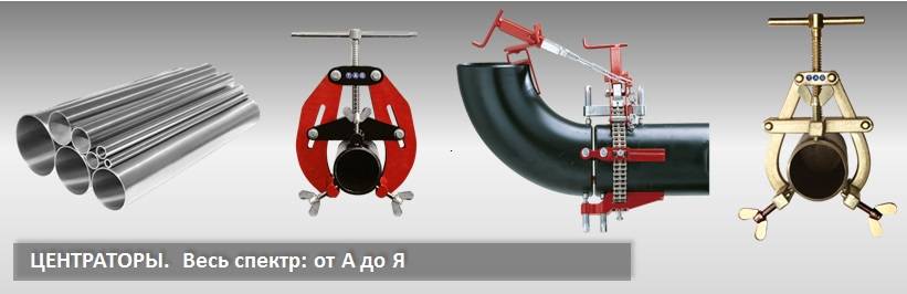 Производители центраторов предлагают различные способы решения задач центровки стыка в зависимости от принятой технологии сварочных работ, диаметра и материала труб, возможного наличия эллипсности и необходимости приварки отводов и патрубков.