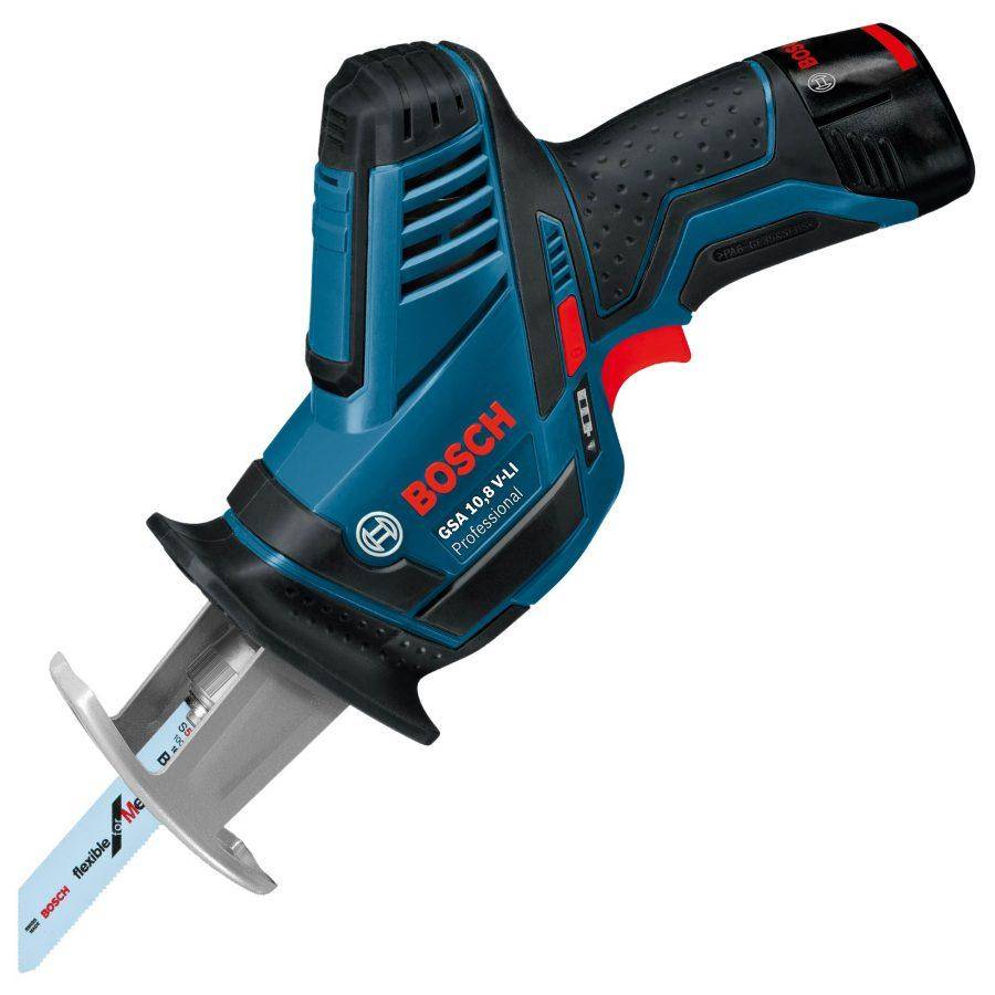 Продолжая обзор сабельных пил и сравнение их характеристик, надо представить модель GSA 12V-14 от фирмы Bosch. Маневренный легкий инструмент отлично показал себя при обработке дерева, пластика и металла. Благодаря системе Bosch SDS, можно быстро и без затраты усилий поменять пильное полотно. Аккумулятор типа Li-Ion позволит долго работать на одной зарядке. В комплекте есть два аккумулятора и зарядное устройство, две пилки и удобный пластиковый кейс для хранения.