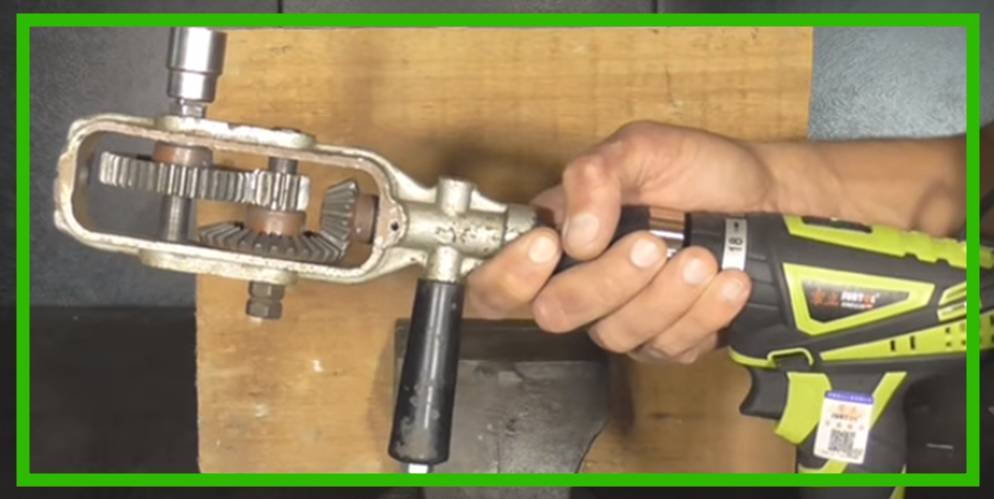 Из ручной дрели можно также сделать очень удобный ключ, что-то наподобие трещотки. Для этого потребуется все лишь две шестеренки и некоторые дополнительные детали. В результате получится инструмент такого типа, как показано на фото ниже.