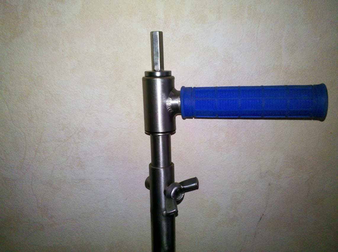 Выбрасывать рукоять совершенно необязательно. Для неё можно сделать фиксацию на конце трубы. При таком подходе, даже если аккумулятор шуруповёрта будет разряжен, то рыбак всё равно сможет сделать прорубь традиционным способом.