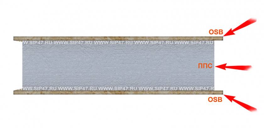 СИП панель (структурно изолированная панель) представляет собой строительное изделие, включающее две плиты ОСП (ориентированно-стружечные) со вставкой из утеплителя – пенополистирола (ППС) между ними, соединенных и спрессованных с помощью специального клея под давлением 20 тонн. Такое строение позволяет панелям выполнять двойную функцию – они служат не только для тепло- и звукоизоляцией ограждающих конструкций, но и способны выдерживать значительные сжимающие и изгибающие нагрузки. Поэтому эти изделия подходят для строительства любых видов зданий. Применяются для стен, перегородок, в качестве плит перекрытий и покрытия крыши.