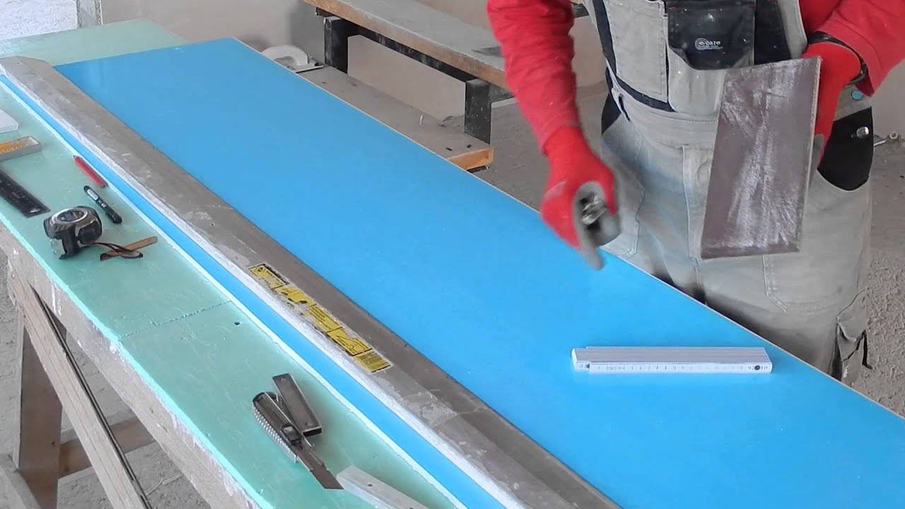С помощью рулетки необходимо замерить длину и ширину откосов. С учетом этих данных из сэндвич — панели вырезаются три полосы: верхняя (параллельная подоконнику) и две боковые.