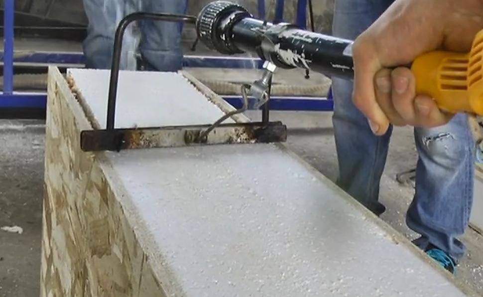 Конечно, таким терморезаком работать не так удобно, как фабричным термоножом, поскольку перед выборкой пенополистирола приходится делать в нем прорезы вдоль кромок обшивки, например – болгаркой, или цепной пилой. Но, когда приходится резать сэндвич-панели в «полевых» условиях – вполне сойдёт.