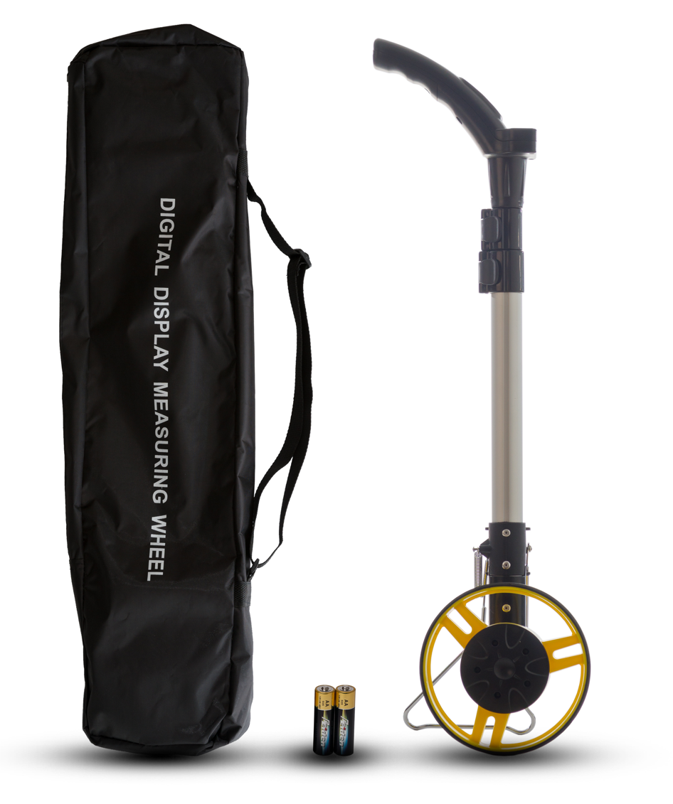 Курвиметр для измерения расстояния на местности также называется дорожное колесо. Он используется для установки разметки на местности и измерения расстояния. Применяя колесо можно получить точные данные, погрешность которых будет намного меньше, чем у рулетки. Прибор позволяет получить длину поверхности с учетом всех углублений и бугорков. Счетчик дорожного курвиметра может устанавливаться внизу возле самого колеса, или вверху на рукояти.