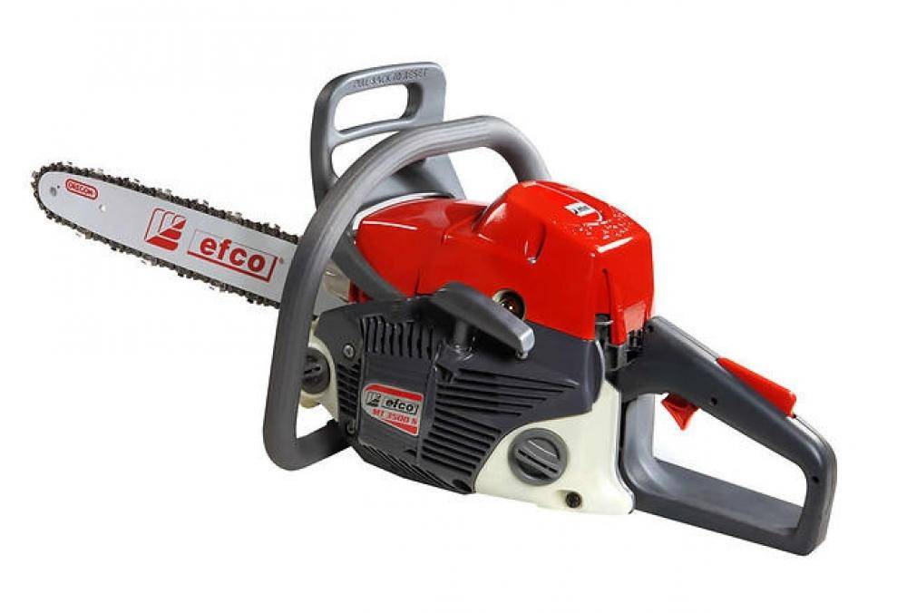 | 3 | EFCO MT-350 S/35R | ![]() | 9690-10700 | Полубренд — родственный OleoMac. Неплохая мощность — 2 л.с., оснащается шиной длиной 35 см. При этом очень легкая для своего класса — 4,4 кг., имеет систему, гасящую вибрации. Утверждается, что произведена в Италии (хотя мы не верим). Отзывы владельцев подтверждают длительное беспроблемное использование на протяжении многих лет. | Недостатков найти труднее. Обычно негативные отзывы связаны с браком, который, как и у других пил, всегда случается. Ремонтники называют не всегда правильную регулировку подачи масла. По надежности при выполнении всех предписаний инструкции является очень хорошим и неплохим вариантом. Среди приведенных пил главный ее недостаток — высокая цена, за эти деньги можно купить целых две пилы из первой части обзора. И комплект цепей и шин на сдачу. |