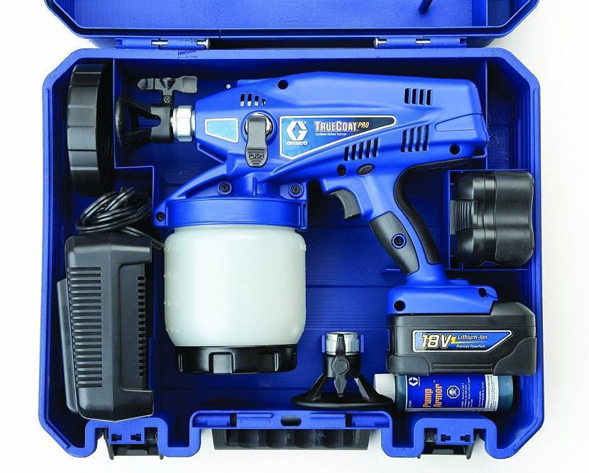 По существу, это тот же электрокраскопульт для всех видов краски, только питается не от сети. По удобству и компактности сходен с ручным шуруповёртом.
