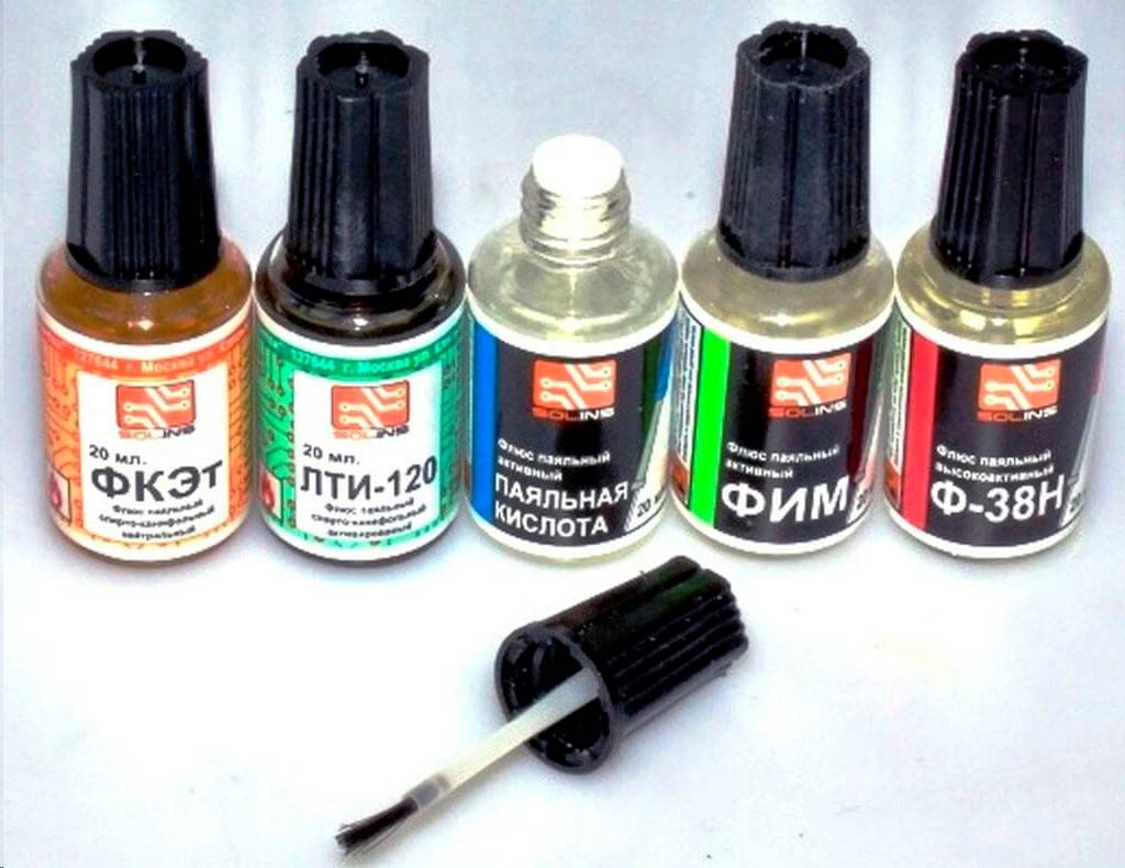 В продаже имеются в ассортименте многокомпонентные жидкие флюсы для специального применения. Составляющие их подобраны таким образом, что определенная группа металлов для данной рецептуры подходит лучше всего. Во флаконах намешано много чего. Нет смысла вникать в перечень компонентов. Просто покупаем тот флакон, описание которого на этикетке лучше всего подходит для решаемой задачи.