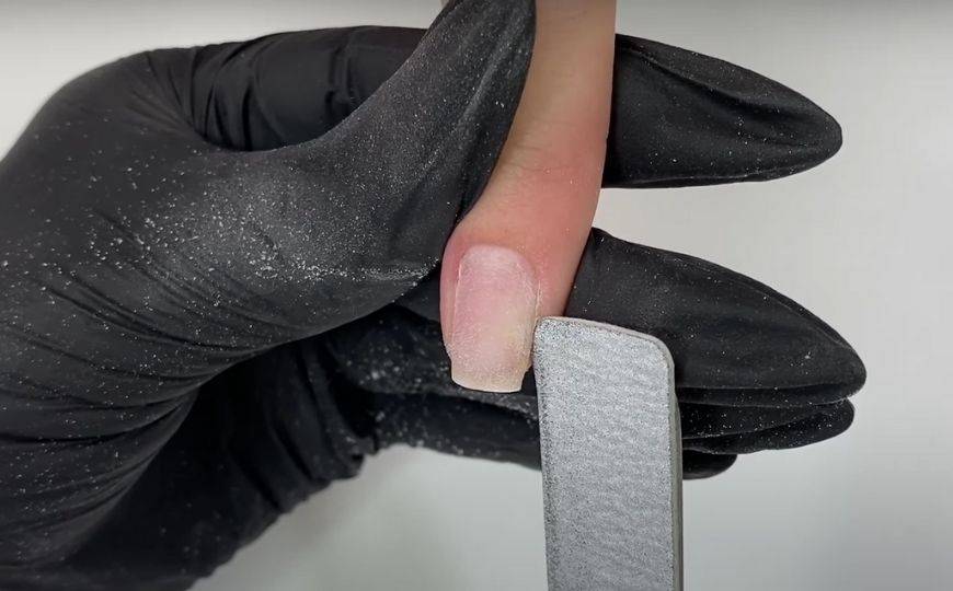 Затем запиливают так: параллельно боковые стороны, чуть-чуть сузить и закруглить край до полуовала. Когда ногти готовы, необходимо проверить изгиб арки.