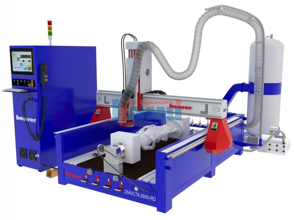 По программе фреза совершает перемещение по осям X и Y, меняя глубину реза, или движется по контуру, в зависимости от типа программы. В комплект станка входит устройство, удаляющее стружку – промышленный пылесос.