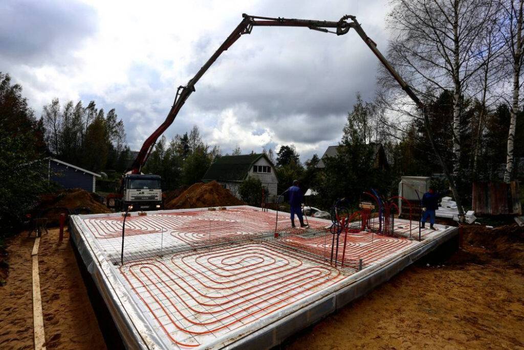 Строительство шведского фундамента требует довольно большого объёма бетона, так как плита представляет собой монолитную конструкцию. В результате этого затраты на материалы довольно большие, что следует учитывать перед началом работ.