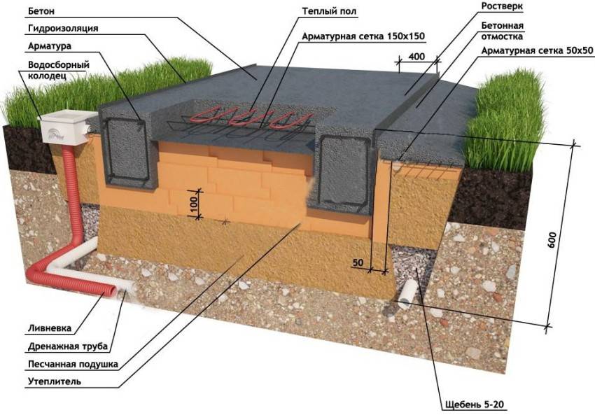 - Подушки из песка и щебня, предотвращающие подход влаги к основе.