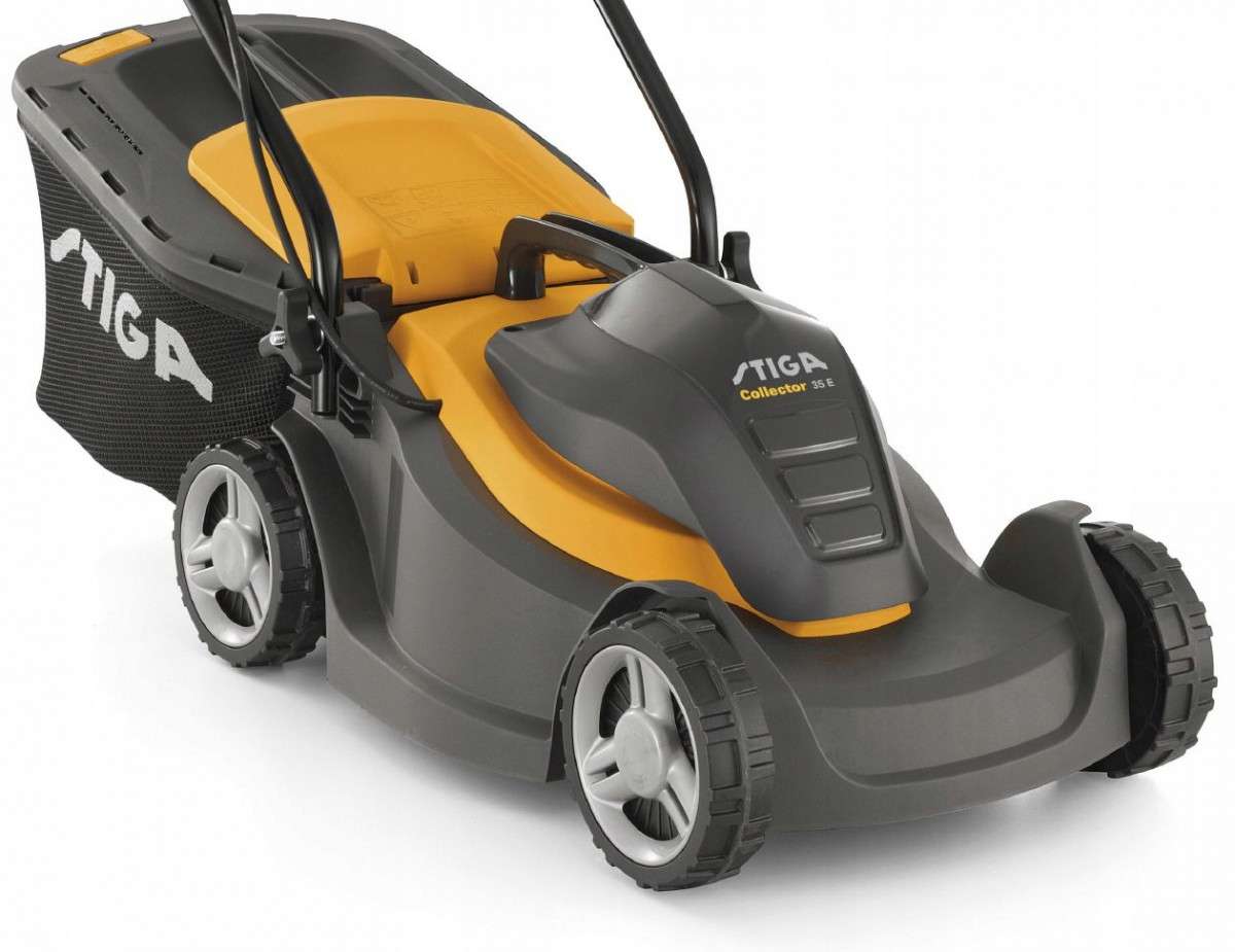 STIGA Collector 35 E представляет собой компактную и легкую газонокосилку с электрическим двигателем мощностью 1000 Вт. Эта практичная косилка весит всего 13 кг и имеет ширину кошения 33 см. Модель оснащена 30-литровым тканевым травосборником с индикатором уровня заполнения. Система регулировки высоты кошения на осях имеет три положения (от 25 до 65 мм). Эргономичная рукоятка с удобным рычагом легко складывается для экономии пространства при хранении. В верхней части газонокосилки расположена ручка для переноски. Если не знаете, какая газонокосилка лучше для неровной поверхности, то подумайте о данной модели.