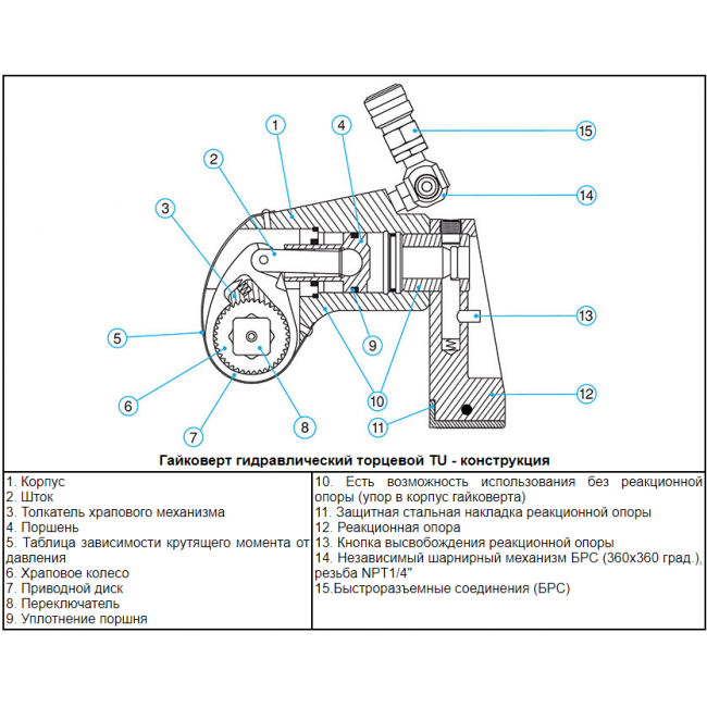 Гидравлический гайковёрт ГР500 относится к инструменту реверсивного типа. Он позволяет кратковременно изменять направление вращения рабочей головки, что часто используется при монтаже старых и заржавевших крепёжных соединений.