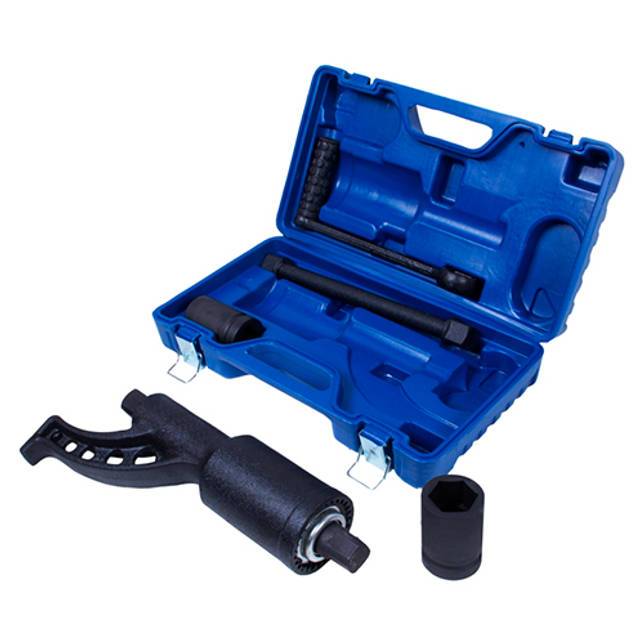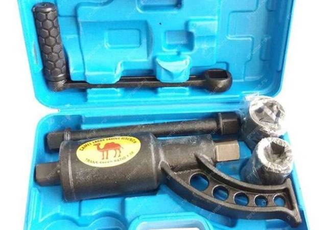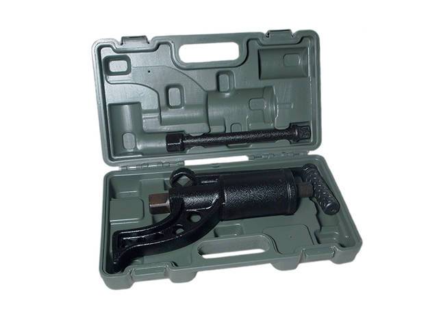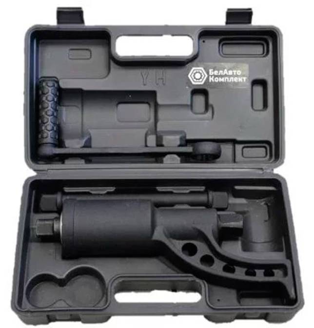 Приспособление незаменимо в дороге, – при необходимости заменить или отремонтировать колесо грузового автомобиля. Начальное усилие 6300 Н*м позволяет страгивать с места прикипевшую гайку с головкой 33 мм. Способствует удобству работы и повышение передаваемого усилия, надеваемый удлинитель на ручку. Инструмент упакован в удобный пластиковый кейс.