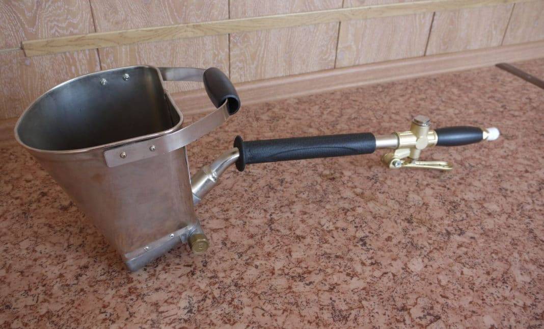 После сборки основной детали котла можно закрепить рукоять на ковше, а нижней части смонтировать сопла, предназначенные для подачи раствора и воздуха.