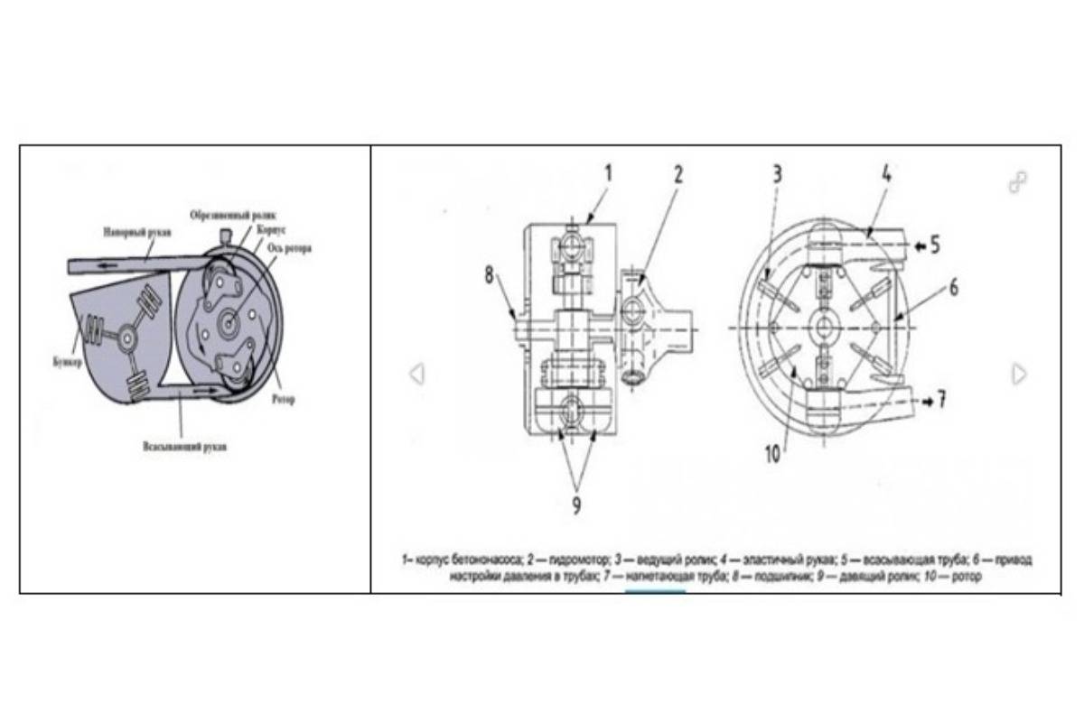 Насос обеспечивает подачу раствора от бетономешалки до места укладки. Она идёт по горизонтали и на высоту.