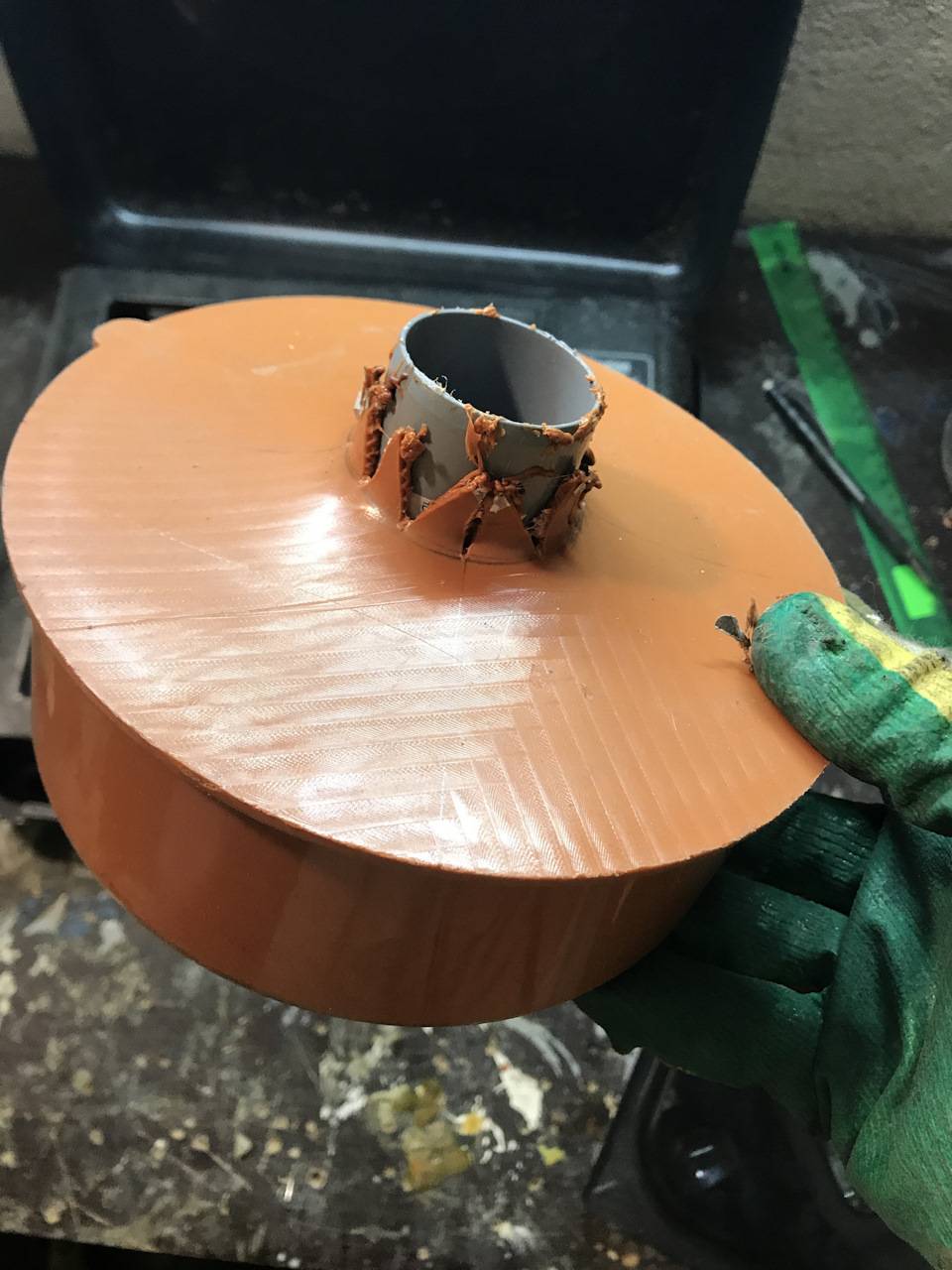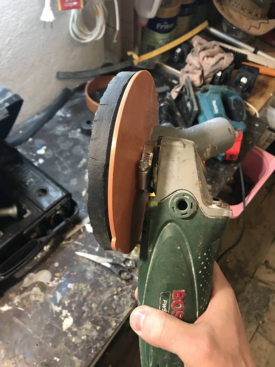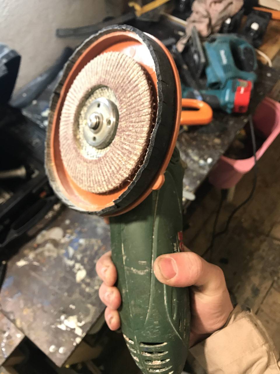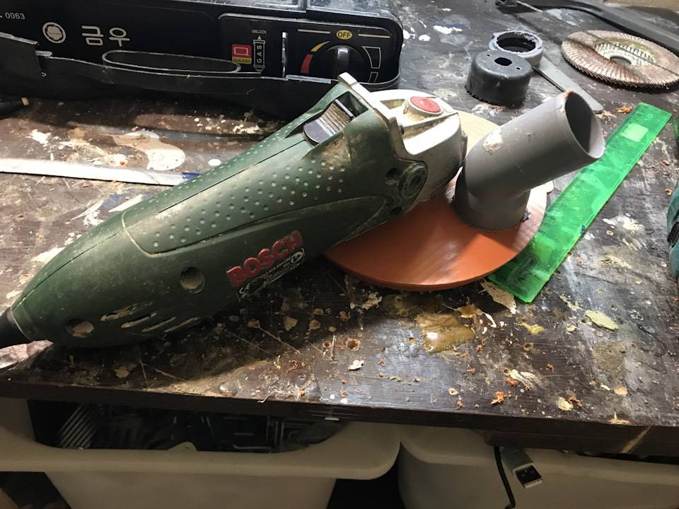 Привет парни! Зачастил я что то к вам). Но так бывает с новичками. Тем много — хочется много спросить, многим поделиться. Воббщем тема такая. Я когда столкнулся со шлифованием стеклопластика, понял что это треш, мягко говоря. Орбиталка у меня с пылеотсосом, а вот болгарка нет. А так как я грубо сначала шлифую ей, то картина выглядит примерно так: