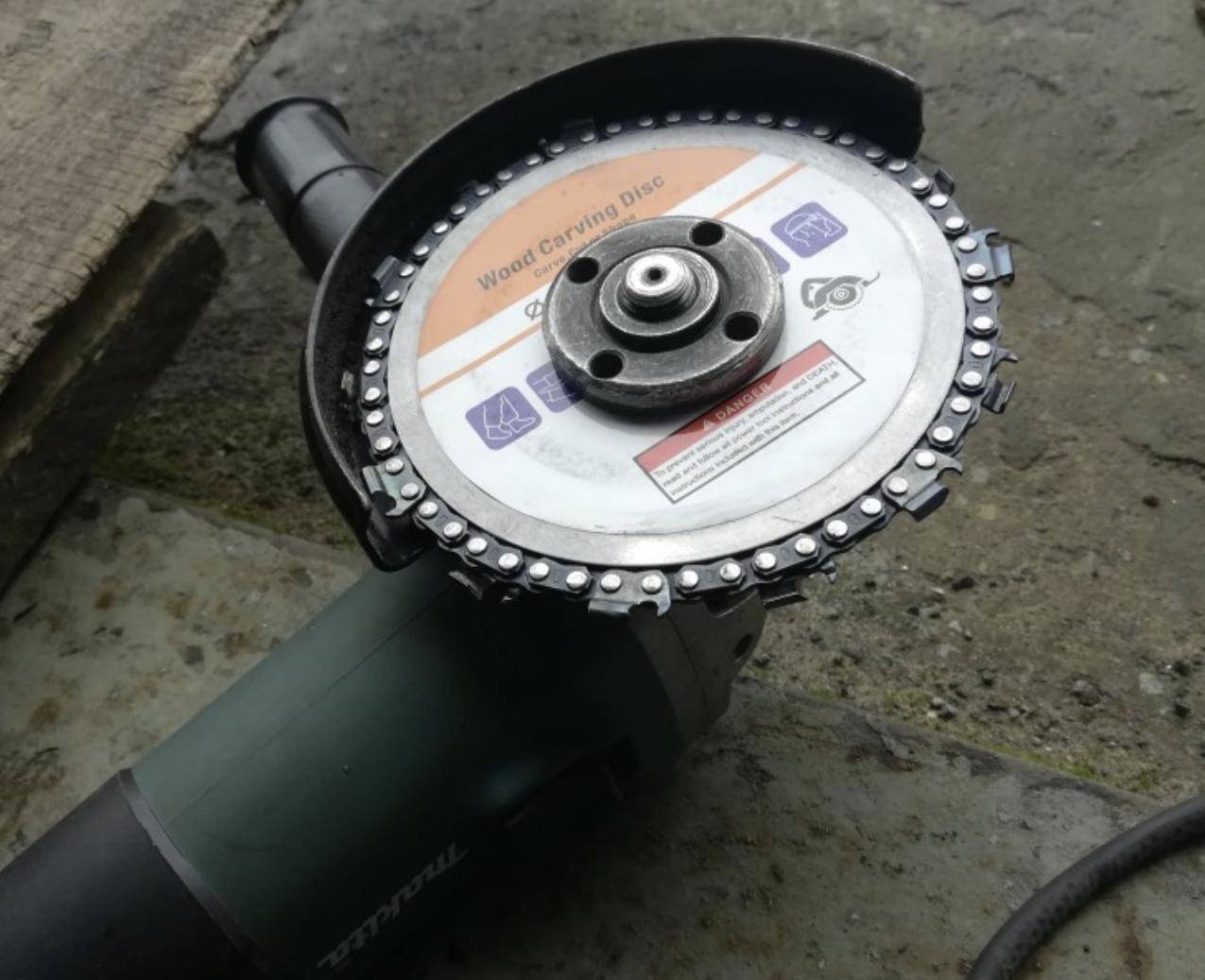 Ценное приобретение для частного дома, дачи, мастерской. «Болгарка», оснащенная таким диском, будет резать дерево, пластмассу, твердую резину, толстый лед. Установка цепного диска обеспечивает шлифмашину возможностями небольшой электропилы.