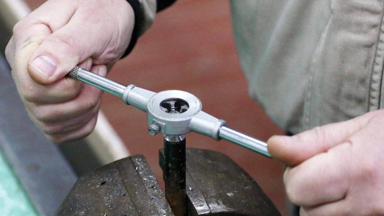 Важно удерживать инструмент с воротком строго вертикально, чтобы резьба получилась ровной.