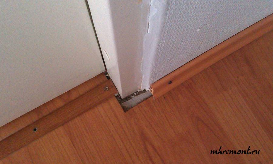 Бывают случаи, что при отделке между ламинатом и стеной образуются щели.
