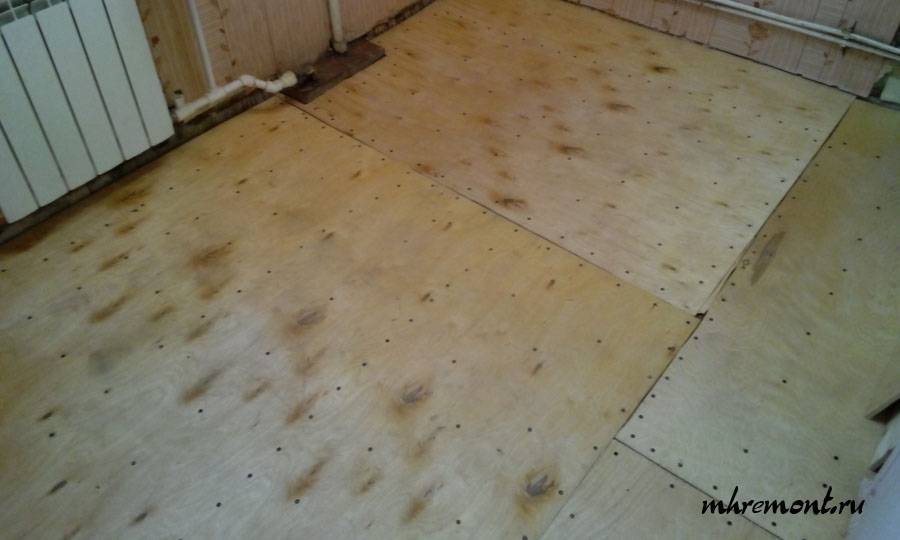 Подготовить деревянный пол можно с помощью фанеры. В большинстве случаев в качестве подготовки будет достаточно положить поверх досок слой фанеры толщиной 10 мм и хорошо закрепить ее с помощью саморезов. Фанера укрепит пол, и сделает его ровным.
