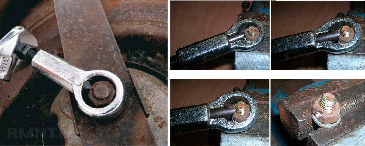 Болтовые соединения, остававшиеся ржавыми по десятку и более лет, могут оказаться совершенно неподдатливыми. Чтобы разъединить детали раньше гайку зарубали или ослабляли с помощью зубила. Достаточно двух насечек на разных гранях, но только не на соседних.