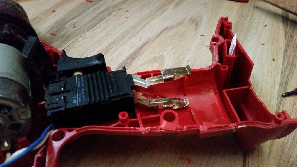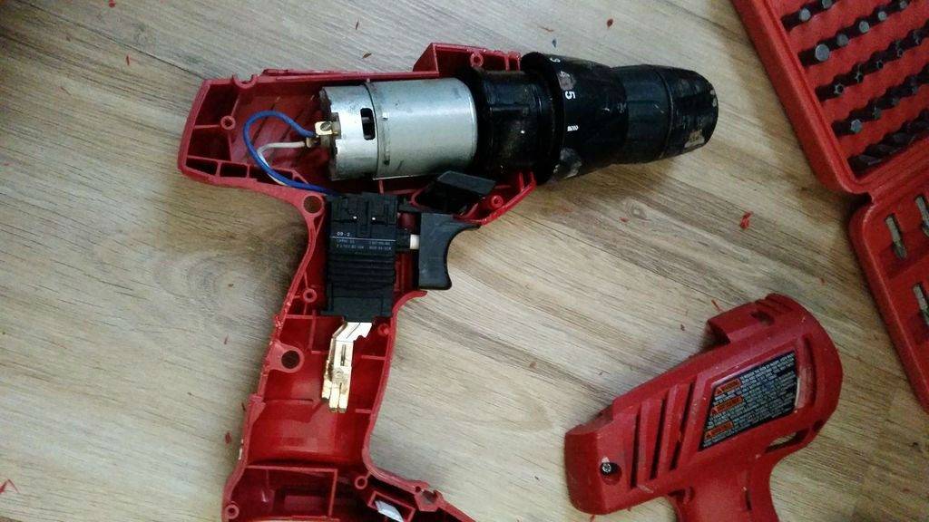 - Завершающим этапом необходимо припаять провода к питанию электрического привода, собрать корпус электроинструмента после переделки.