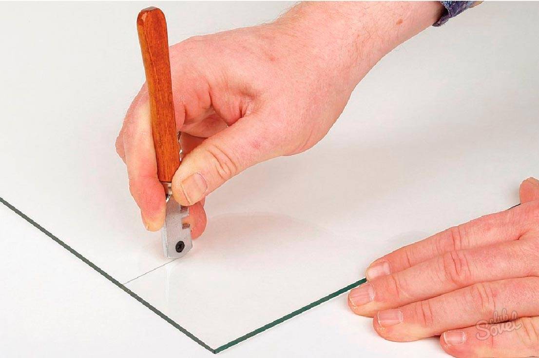 - Приложите линейку вдоль линии разреза. Не убирая линейки (выступает в роли направляющей), приложите стеклорез к верхней части плашки.