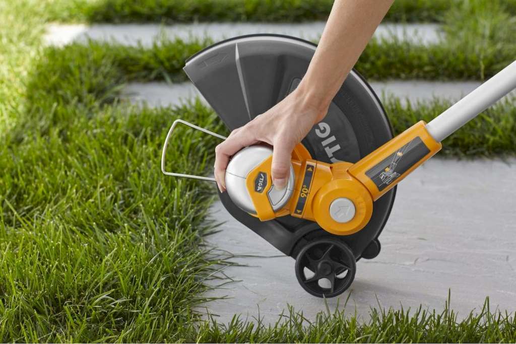 Инструмент необходимо поднять на удобную для стрижки газона высоту, при этом ручку необходимо прижать к бедру, после чего можно начинать стрижку. Чтобы линия среза получалась ровной, головку необходимо удерживать параллельно земле. Обычно я советую в первый раз сделать высоту среза немного выше желаемой. В случае неудачного начала у вас будет возможность исправить ситуацию.
