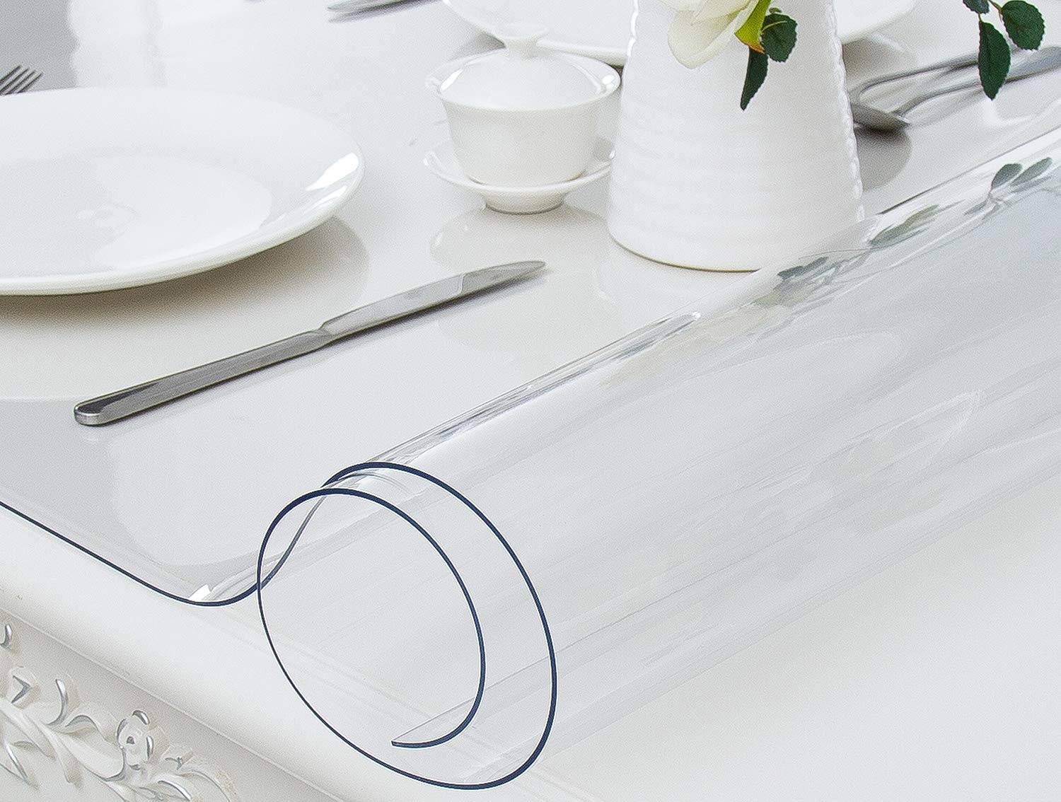 «Мягкое стекло» — так чаще называют подобную скатерть. Она защищает от повреждений, а также загрязнений, легко моется и смотрится красиво. Прозрачность долгое время радует глаз, не закрывая поверхность.