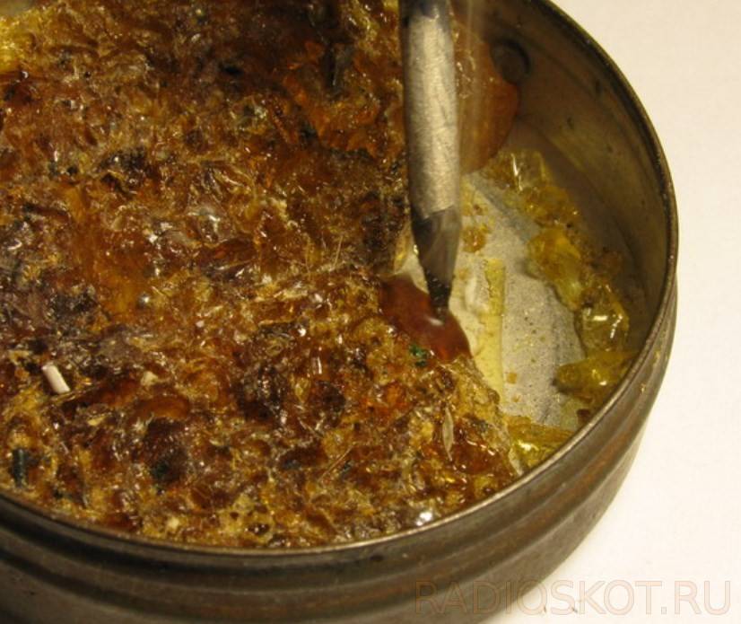 - Канифоль. Это очищенная сосновая смола. Хорошо себя зарекомендовала, но при нагревании выделяет сильный едкий запах.