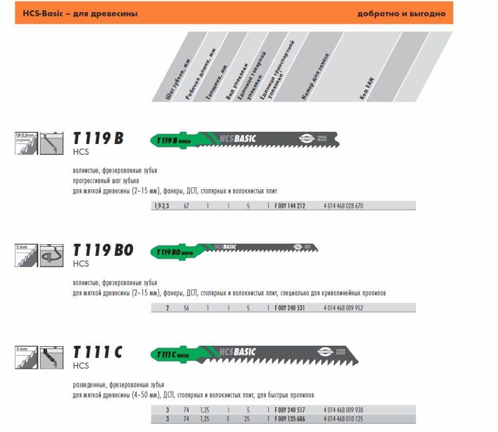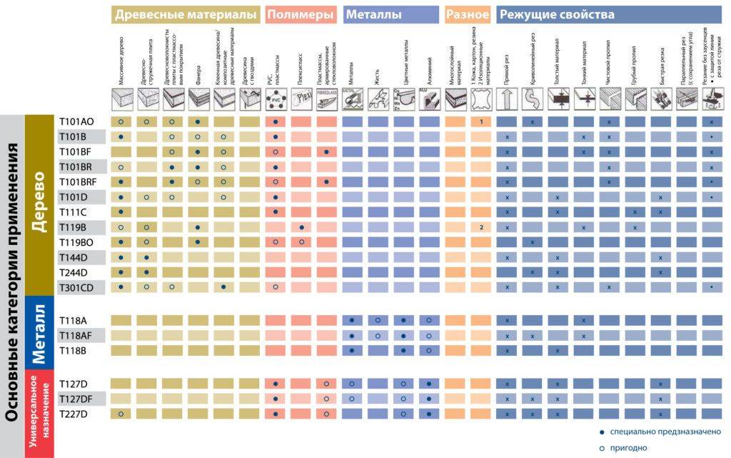 Таблица пилок для электролобзиков в зависимости от области применения