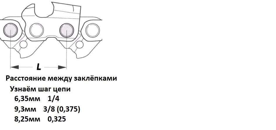 Шагом называется важный параметр, по которому ориентируются для выбора цепи для бензопил. Измерить шаг на своей имеющейся гарнитуре можно путем прикладывания линейки к первому и третьему звену заклепок. Этот параметр измеряется в дюймах, и чем больше это значение, тем выше производительность инструмента.