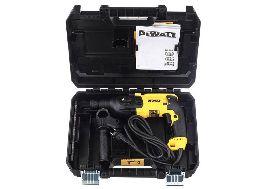 Как правило, все перфораторы поставляются в специальных пластиковых кейсах. В комплект входят боковые рукоятки, обеспечивающие удобство в работе, свёрла, коронки, буры и лопатки. Также, в комплекте может поставляться технический вазелин, для смазки быстрозажимного патрона, обеспечивающий его надёжную работу и линейка для определения глубины сверления.