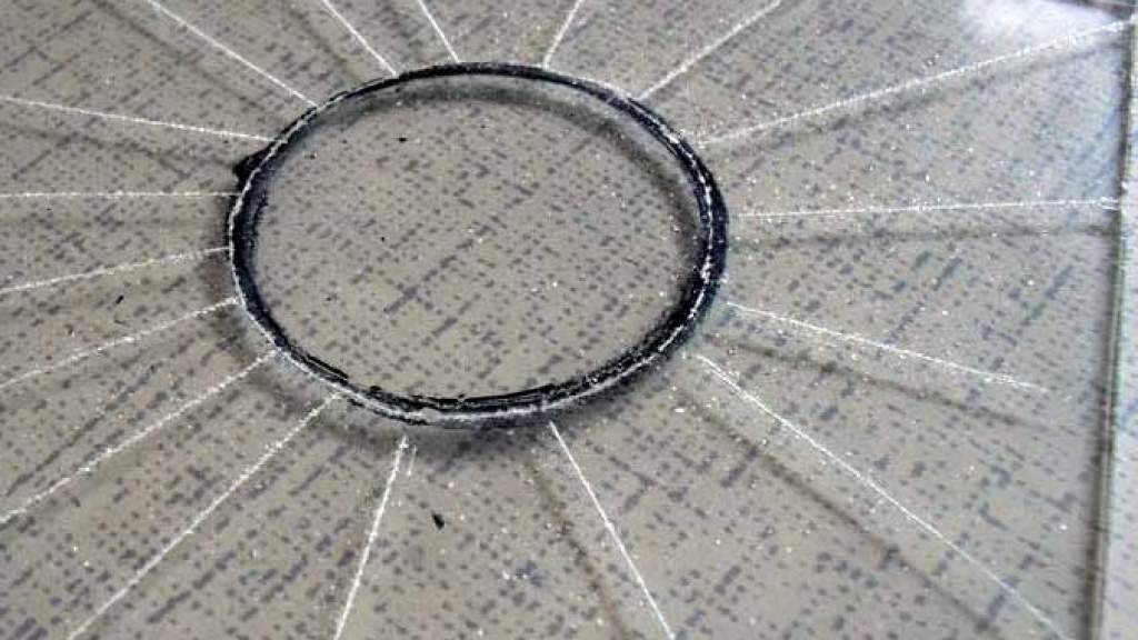 Нить натягивают, затем инструментом проводят линию. Дополнительно делают разрезы-перпендикуляры на четырех сторонах стекла, они позволят без особых проблем «добыть» круг из материала. Если лист большой, то чертят много лучей. Стекло берут в руки, аккуратно нажимают на его края со всех сторон. После этого от круга достаточно легко отламывают «лишние» элементы.