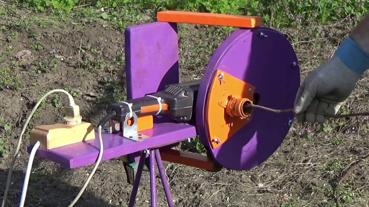 Созданное устройство можно усовершенствовать. Для этого потребуется насадка на вал болгарки длиной около 15 см с двумя ножами: на верхнем конце и посредине. Лезвия разделяют сеткой, закрепленной к стенке кожуха.