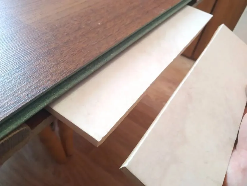 - Переломить плитку по линии разреза, подложив под нее рейку, либо использовать край столешницы, применяя давление на свисающую часть.